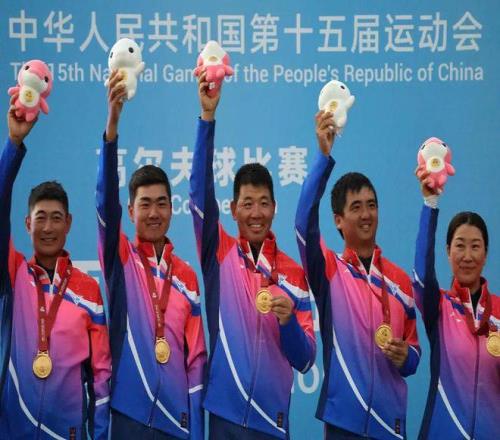 第十五届全国运动会高尔夫球男子团体赛中,由窦泽成、吴阿顺、袁也淳、许安迪组成的上海队,最终以四轮总成绩802杆(-38)摘得金牌!