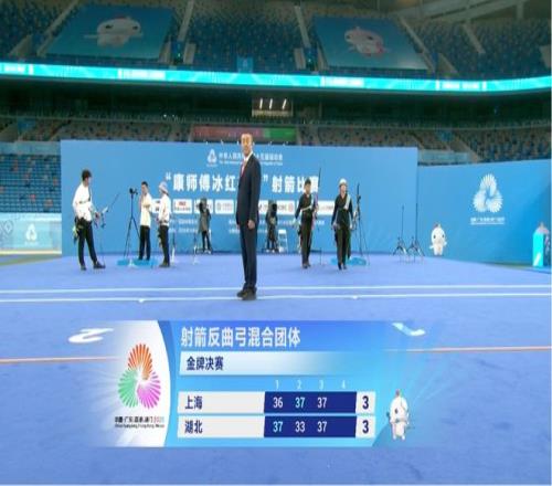 决赛面对湖北队,首局,上海队交出36环,但湖北队最后两箭均为10环,该局成绩为37环,先得2分。第二局,湖北队选手宗钰出现失误,第二箭仅有5环。上海队以37比33扳平大比分。第三局,双方37环打平,大比分来到3比3!