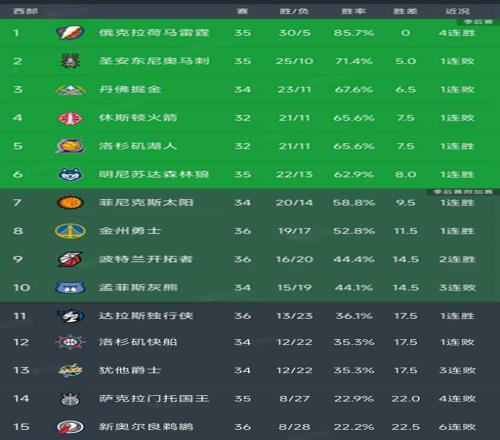 马刺和火箭两支排名靠前的球队都输球了,马刺主场110-115爆冷不敌开拓者,这一场比赛马刺命中的三分球比开拓者少了10记,科内特的23分是全队最高分。虽然输球,但不会影响第二名的位置,还领先第3名1.5个胜场。开拓者迎来两连胜,排名反超灰熊升第9名,杨瀚森获得了10分钟的上场时间,通过罚篮拿到2分外加2篮板2盖帽1助攻。火箭由于申京受伤离场,104-110憾负独行侠,4连胜被终结,战绩和湖人持平21胜11负暂列第4名。