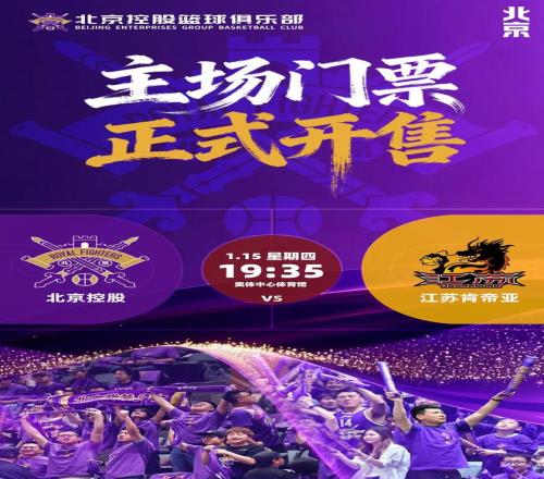 【票务公告】北控男篮对阵江苏男篮主场门票将于1月8日1218开售