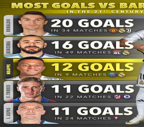 21世纪对阵巴塞罗那进球最多的球员榜单
