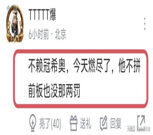 赛后,许多球迷对吴冠希的表现,给予了充分肯定,纷纷表示“不赖冠希,今天燃尽了,他不拼前板也没那两罚。”;“冠希最近几场都非常不错了,值得鼓励。”;“真的不怪冠希,听说都骨裂了,这对罚球肯定有影响,再说,那2罚是他拼老命抢下的前场板,大家真的不能喷他,没他,也许比赛早花了!”……