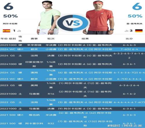 小兹维列夫的底气还在于,职业生涯至今和阿尔卡拉斯交锋12次,各胜六场、平分秋色。大满贯赛场两人四次交锋,同样胜负各半、平分秋色。而且正是在2024年澳网1/4决赛,小兹维列夫四盘击败了职业生涯第一次闯进澳网八强的阿尔卡拉斯。如今2026年澳网半决赛,小兹维列夫理当占据一定的心理优势。