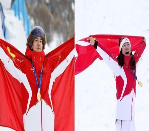 35岁的徐梦桃和22岁的苏翊鸣,分别在自由式滑雪女子空中技巧和单板滑雪男子坡面障碍技巧项目中站上最高领奖台。影像定格这一历史性瞬间,连接起两个时代,在利维尼奥合成一个故事。