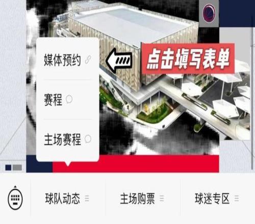 点击俱乐部公众号主页左下角菜单栏【球队动态】,选择【媒体预约】;