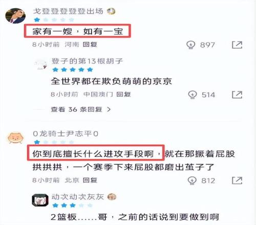 赛后,某篮球论坛上,球迷忍不住纷纷吐槽:“家有一嫂,如有一宝”、“你到底擅长什么进攻手段啊,就在那撅着屁股拱拱拱,一个赛季下来屁股都磨出茧子了”、“这就是全明星?”.....