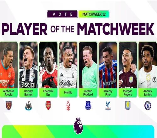 北京时间11月25日,英超官方公布了第12轮比赛的最佳球员候选,其中埃泽、安德雷-桑托斯、穆里略、哈维-巴恩斯、阿雷奥拉、摩根-罗杰斯、皮克福德、耶雷米-皮诺在列。阿雷奥拉(