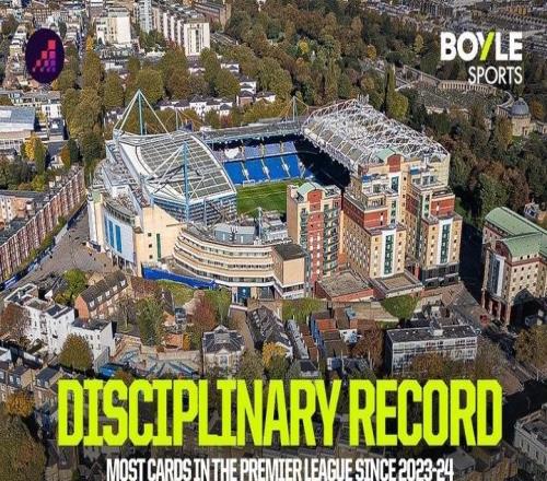 自2324赛季以来英超红黄牌榜:切尔西共计239张居首