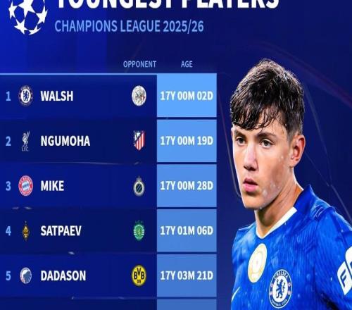 北京时间10月25日,德转统计出了本赛季至今欧冠出场最年轻的10名球员,切尔西的小将雷吉-沃尔什第一,利物浦的恩古莫哈第二,拜仁慕尼黑的威兹德姆-迈克第三。本赛季欧冠最年轻出场