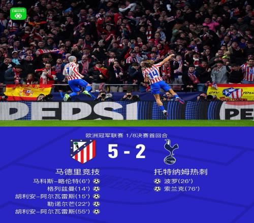 欧冠18决赛首回合热刺2比5惨败马竞