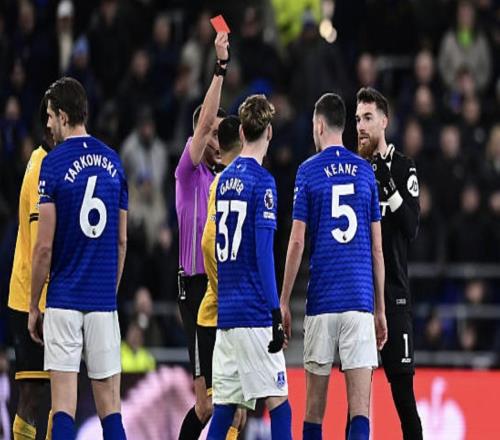 英超九人埃弗顿11狼队基恩破门+中柱+染红格拉利什两黄被罚下