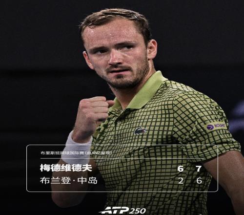 2026年1月11日,ATP250布里斯班站男单决赛落下帷幕。俄罗斯名将梅德韦杰夫直落两盘,以6-2/7-6(1)击败美国选手中岛布兰登,赢得新赛季开门红。这是梅德韦杰夫职业生涯的第22个巡
