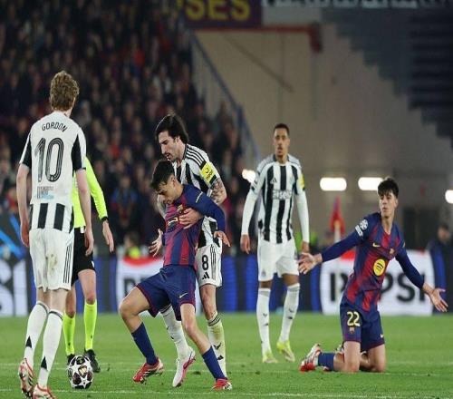 北京时间3月19日,欧冠八分之一决赛次回合,巴塞罗那主场迎战纽卡斯尔,首回合两队战成1-1平。比赛中。图源:视觉中